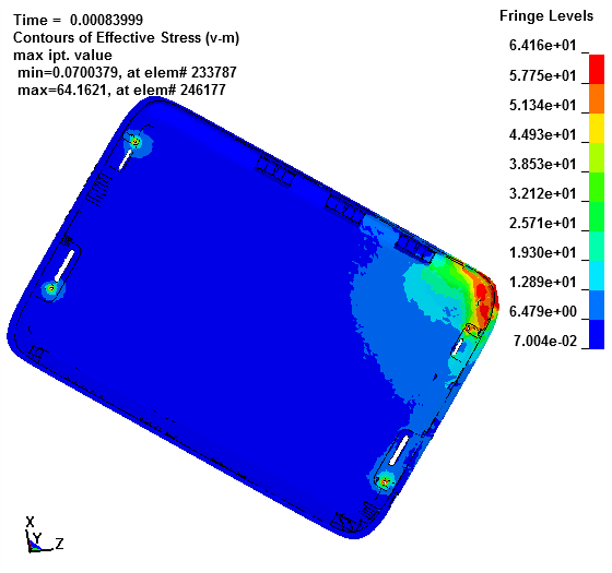 可以轻松地进行虚拟测试,得到设计产品系统的机械性能、热能、电磁性能。,在产品的设计初期就能知道产品是否足够安全。根据仿真数据进行优化设计,使得产品在上述意外载荷作用下,依然毫发无伤。